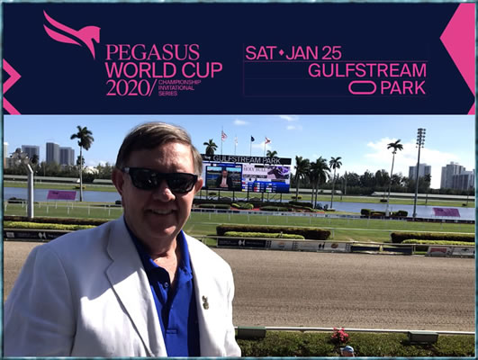 It's Pegasus Week, and as cool as last week was with the first of the big "Premier Stakes Saturdays" on Sunshine Millions Day, this would be one of THE biggest. Just the price of tickets should tell you all you need to know. To sit in the grandstand along the stretch last week for Sunshine Millions was a $20 ticket....for the Pegasus World Cup Day: $215! It was a great day of racing, and while it wasn't the most successful or profitable day I did win 35% of my picks and as I often say on days like today, "I'd like to have a high win pct. and make money, but TODAY it's all about being here." Literally people from all over the world were watching the Pegasus World Cup program and saying to each other, "Wouldn't it be cool to be there? To go to the Pegasus Cup one day?" And here I am, attending my third Pegasus. So fortunate!