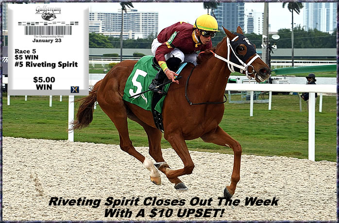 Friday, in the opener I'm convinced that a big reason I had the winner in Golden Aisle is because I've been following So Fla racing for so long. For many years, especially at old Calder Race Course, owner Frank Calabrese would plunge his runners in claiming price to get the win, have them claimed and go get another runner. One of his trainers for a while was current leading trainer at GP, Saffie Joseph. Now, having experienced and seen this countless times from Joseph, the fact that Golden Aisle was plunging from MSW company all the way to the bottom in this $12.5K synthetic sprint did not concern me. I doubled the bet. Broke slowly, but jockey Luis Saez hustled him to the front where he was clear and looked long gone. But the slow start had taken a bit of a toll and in deep stretch they were coming, but as Calder announcer Phil Saltzman used to say, "they're not gonna get him today!" and he held on for the score as I cashed for over $20 on my first pick on the Friday card.